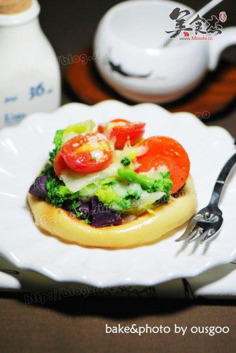- 将发酵好的面团擀成圆形,铺在烤盘上。